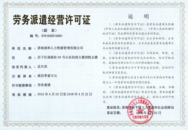 勞務(wù)派遣,是指由鼎和人力作為雇員的法定雇主,實(shí)際用工單位則同鼎和人力公司簽訂勞務(wù)派遣合同,用工單位負(fù)責(zé)派遣雇員的工作管理模式,在用工管理形式中更為靈活。